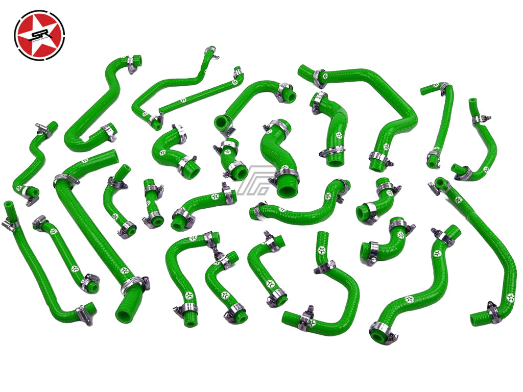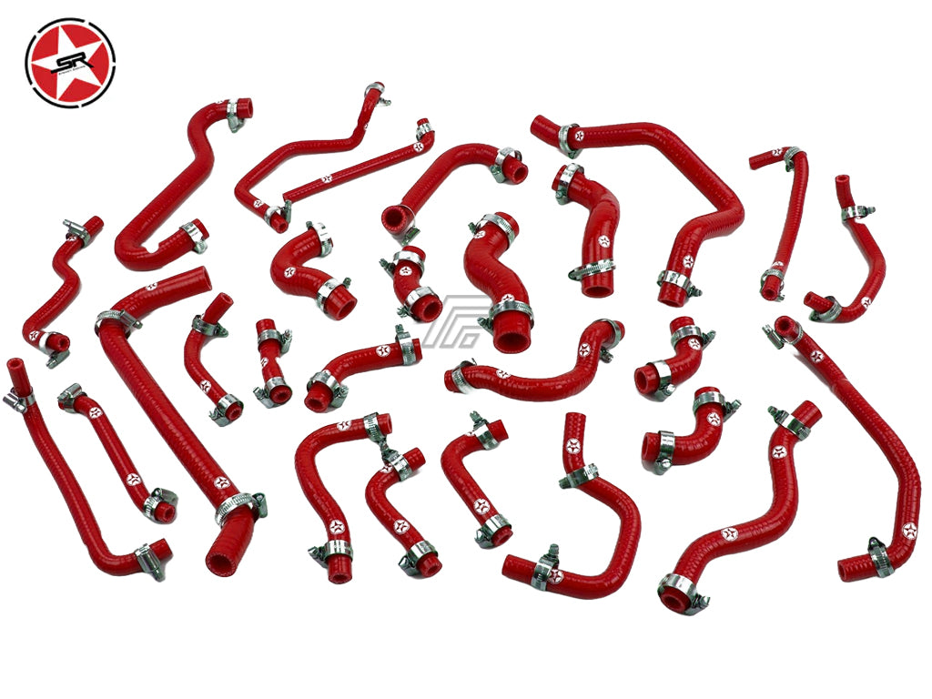 This high quality reinforced silicone hose kit replaces 27 ancillary heater, minor coolant, breather and vacuum hoses in the engine bay listed below.